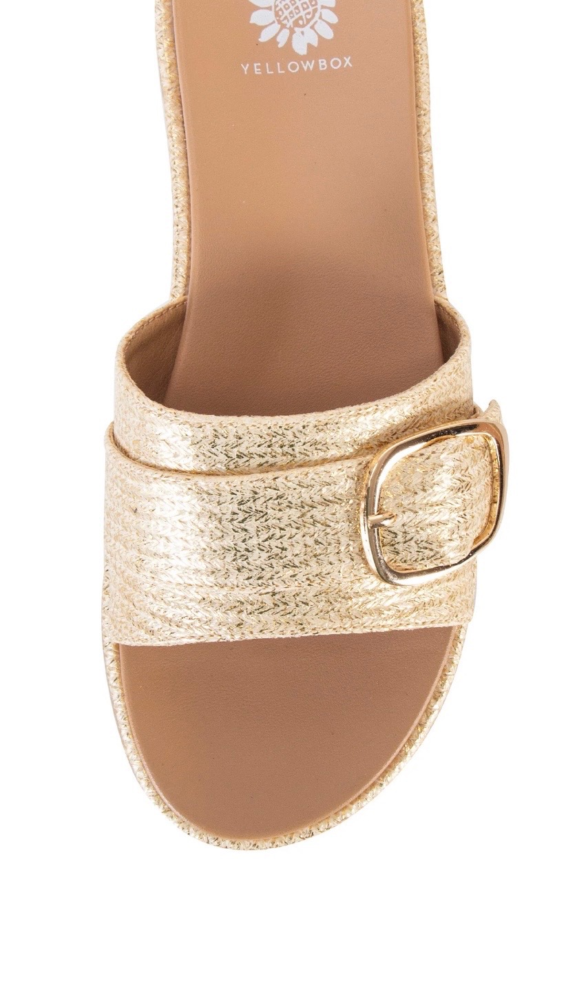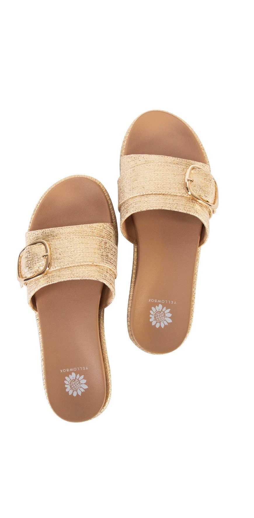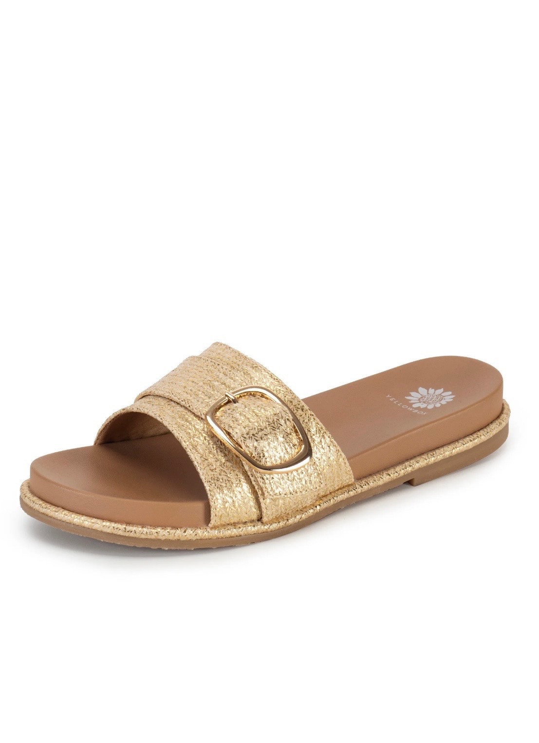 Chic slide sandals featuring a textured woven strap with a stylish buckle accent and cushioned tan footbed. Easy to wear and perfect for casual summer outfits or everyday comfort. Available in sizes 6-10.